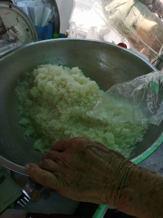 สามีท่านเสียตั้งแต่อายุ 30 กว่า ท่านบอกว่าขายได้ก็ยังพอมีกินไม่ต้องไปขอใคร ขนมของท่านขายไม่แพงเลยท่านบอกทำเองทุกอย่าง มีทั้งฟักทองที่เป็นลูกใหญ่ ๆ ข้างในบอกมีแต่ไส้ล้วน ๆ ข้าวเหนียวทุเรียนชุดละ 50 บาท ข้าวเหนียวมะม่วงชุดละ 50 บาท ข้าวเหนียวเยอะมากมะม่วงทั้งลูกเลยและก็สังขยากล่องละ 20 ไส้เยอะ แล้วข้าวเหนียวเยอะมาก ๆ เช่นกัน ท่านบอกว่าถ้าไม่อร่อยก็มาเปลี่ยนได้ ซื้อมาทานแล้วไม่ได้หวานจนเลี่ยนมาก อร่อยจริงและคุ้มค่าเกินราคา ยังไงแวะไปอุดหนุนคุณยายกันได้ยายขายตรงข้างสำนักงานเขตพระโขนง (ปากซอยสุขุมวิท54) ถึงบ่าย 3 หลังจากนั้นก็จะเข็นเข้าไปขายในซอย”