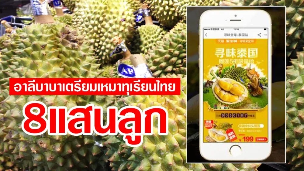 อาลีบาบาเตรียมเหมาทุเรียนไทย ส่งขายจีนปีหน้า 8 แสนลูก