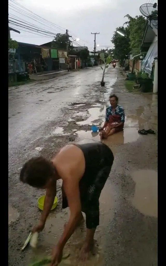 เป็นคลิปที่ชาวเน็ตแห่แชร์และให้ความสนใจกันเป็นจำนวนมาก สำหรับคลิปชาวบ้านนั่งอาบน้ำข้างถนน เมื่อมีผู้ใช้เฟสบุ๊ครายหนึ่งได้ออกมาโพสต์คลิปและเรื่องราวโดยระบุข้อความว่า…