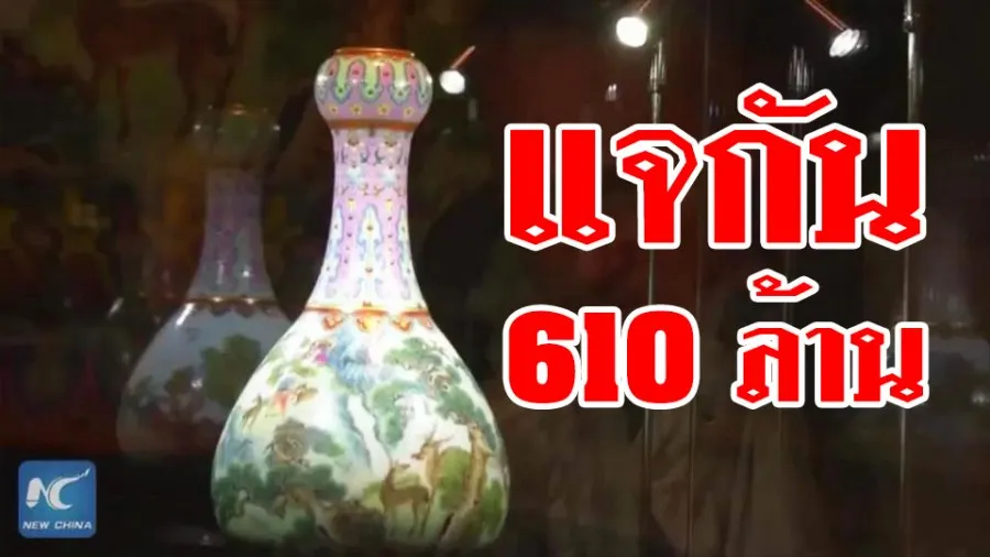 รายงานระบุว่าตัวเลขดังกล่าวถือว่าสูงสุดสำหรับการประมูลสิ่งของชิ้นเดียวของโซเธบีย์สในฝรั่งเศส โดยแจกันทรงคล้ายหลอดไฟ ความสูง 30 เซนติเมตร มีลวดลายละเอียดประณีตในสีเขียว สีฟ้า สีเหลือง และสีม่วง ยังคงอยู่ในสภาพสมบูรณ์ดีเยี่ยม เชื่อว่าถูกทำขึ้นมาเพื่อจักรพรรดิแห่งราชวงศ์ชิงของจีน