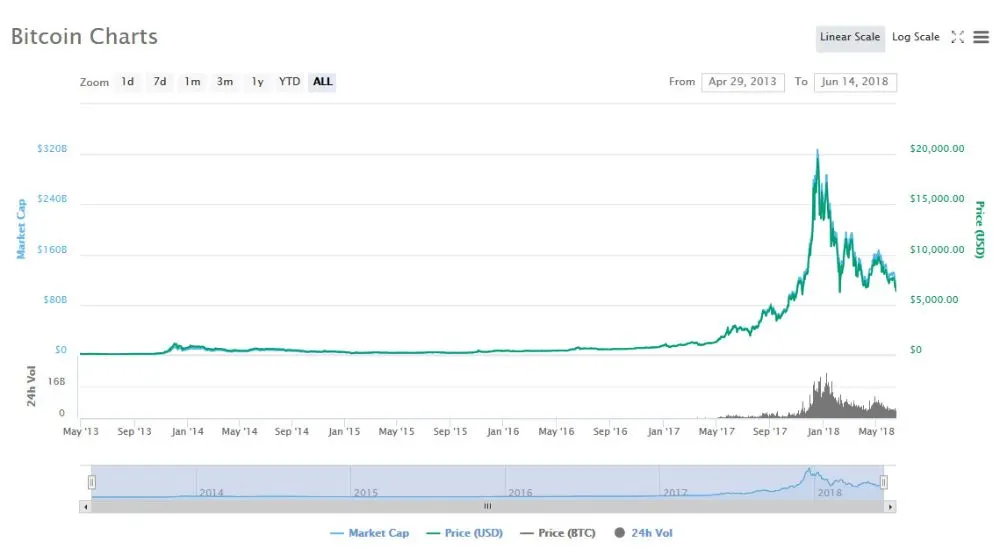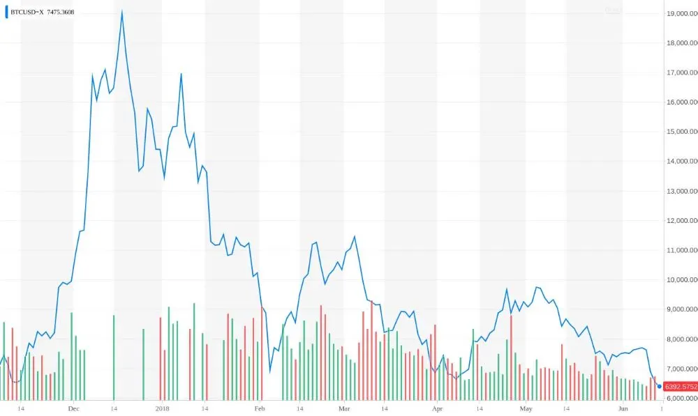 บิตคอยน์เคยราคาสูงสุดถึง 19,000 ดอลลาร์ช่วงเดือนธันวาคมและตกลงมาอย่างรุนแรงหลังจากนั้น จนเหลือต่ำกว่า 7,000 ดอลลาร์แต่ก็กลับขึ้นไปเหนือ 10,000 ดอลลาร์ได้ช่วงเดือนมีนาคม และตกลงมาอีกครั้งช่วงเดือนเมษายน