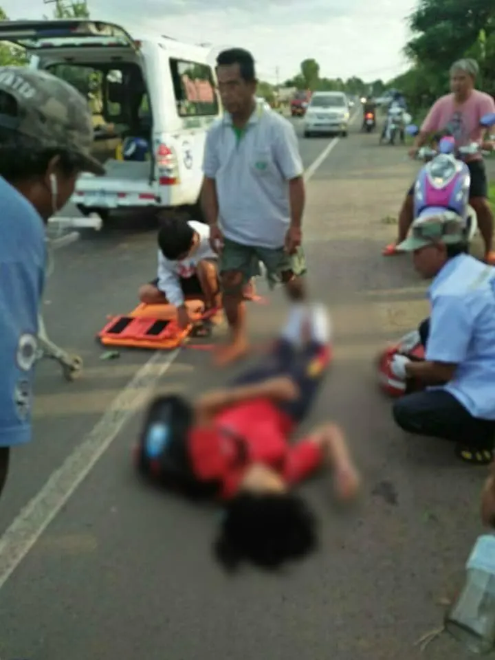 พบ รถโดยสารจอดข้าง และพบผู้บาดเจ็บเป็น หญิง 1 ราย อายุประมาณ 13-15 ปี เป็นนักเรียนจากโรงเรียนแห่งหนึ่งในบุรีรัมย์ บาดเจ็บเป็นแขน และมีแผลถลอก รู้สึกตัวดี กู้ชีพทำการ ปฐมพยาบาลเบื้องต้น และ นำผู้ป่วย ส่งไป ยังโรงพยาบาล บุรีรัมย์ เวลา 17.30น.