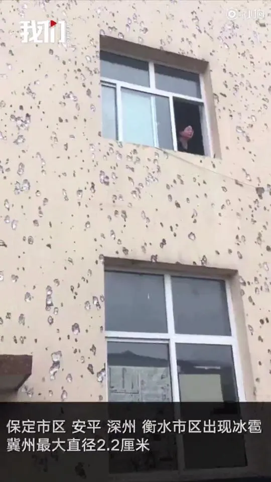 13 มิ.ย. ที่ผ่านมา เวลาประมาณ 15.40 น. มีลูกเห็บตกหนักในเขตอำเภอเป่าติ้ง อำเภอเหิงสุ่ย และอีกหลายพื้นที่ในมณฑลเหอเป่ย ชาวบ้านได้รับผลกระทบกันทั่ว ไม่ว่าจะเป็นกำแพงทะลุเป็นจุดๆ เหมือนโดนกระหน่ำยิงด้วยลูกกระสุน ตัวรถและกระจกรถพังทะลุ ผลผลิตทางการเกษตรก็ได้รับความเสียหายไปด้วย ยิ่งไปกว่านั้นคือมีชาวบ้านบางรายที่โดนลูกเห็บตกใส่ศีรษะจนศีรษะแตก