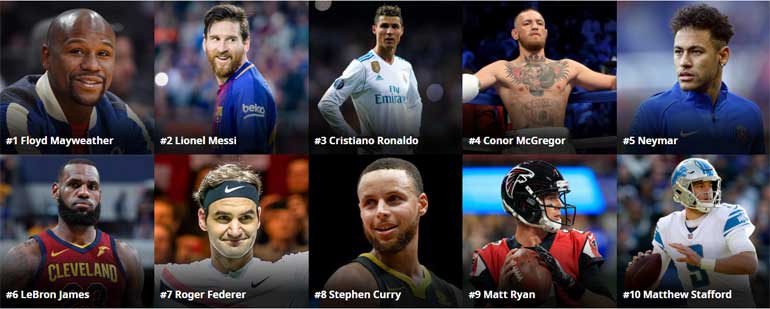 และนี่คือ 5 อันดับแรกของ นักกีฬาที่รวยที่สุดในโลก 2018