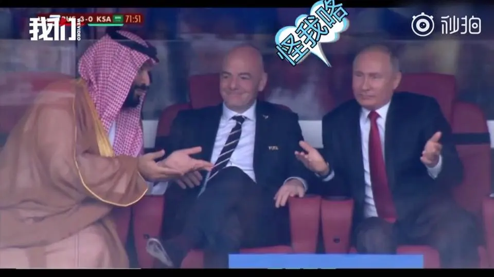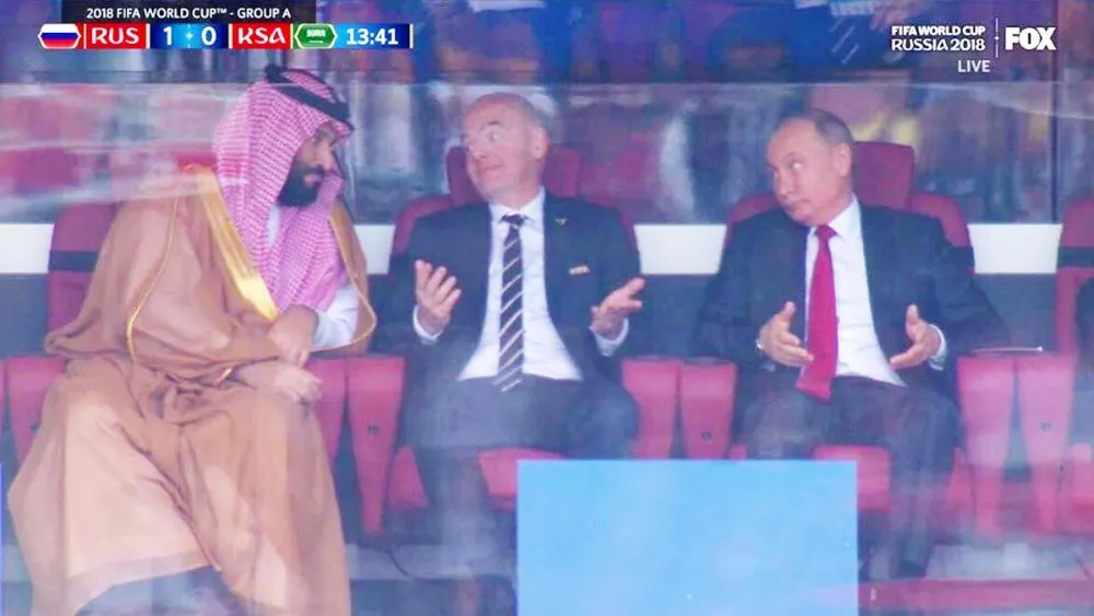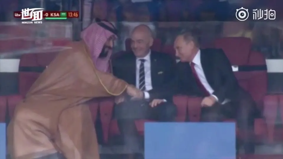 แต่ละครั้งที่ทีมรัสเซียยิงประตูได้ ปูตินซึ่งนั่งอยู่กับเจ้าชายซาอุฯ ก็จะแบมือและยักไหล่เป็นเชิงว่า ‘ช่วยไม่ได้’ และตามมาด้วยการจับมือแสดงมิตรภาพระหว่างกัน