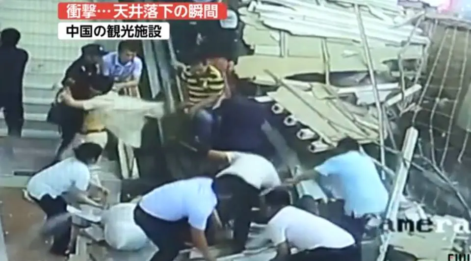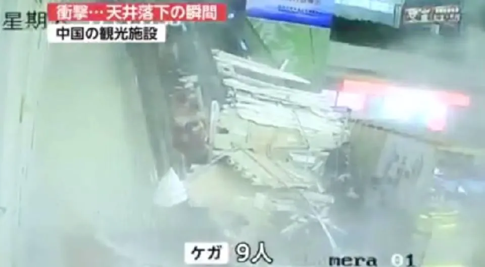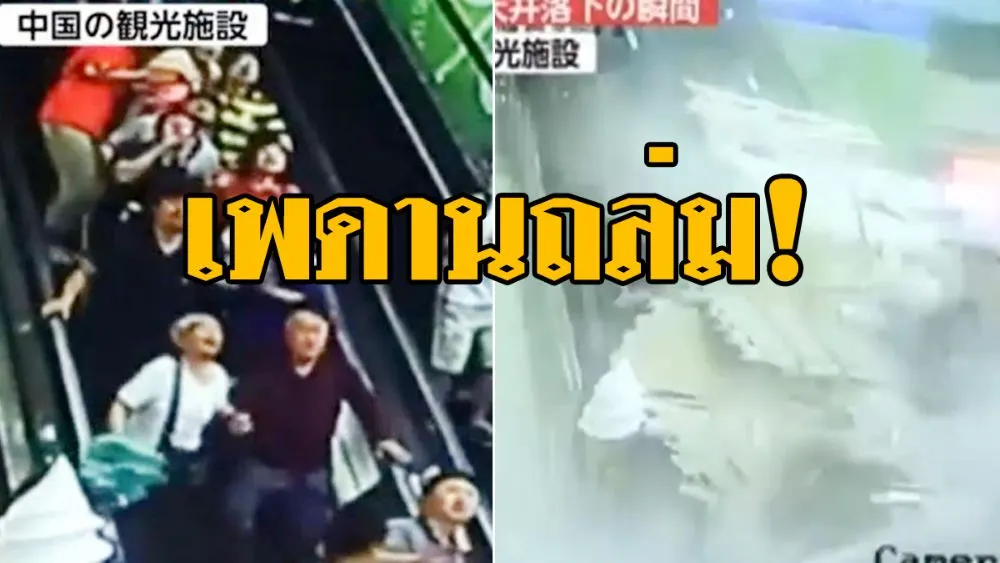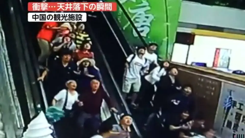 ภาพจากวงจรปิดบันทึกเหตุการร์ชวนผวา เพดานหลุดร่วงใส่ผู้คนในอาคารแห่งหนึ่งขณะอยู่บนบันไดเลื่อน เหตุเกิดที่ประเทศจีน