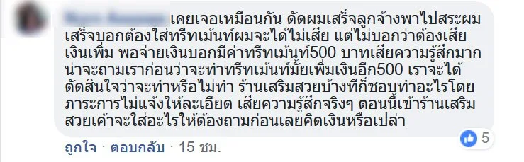 หลังจากนั้นชาวเน็ตก็ต่างคอมเม้นท์ไปต่างๆนาๆ พร้อมทั้งแชร์ประสบการณ์แย่ๆ ที่เคยเจอมาจากร้านอื่น งานนี้หากสาวๆจะเข้าร้านใหม่ที่ไม่เคยทำผมกันมาก่อน คงต้องถามราคาให้ชัดเจน ว่าสรุปรวมทั้งหมดกี่บาท น่าจะดีที่สุด