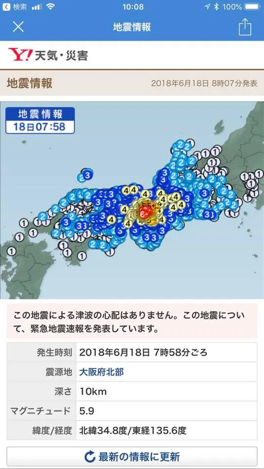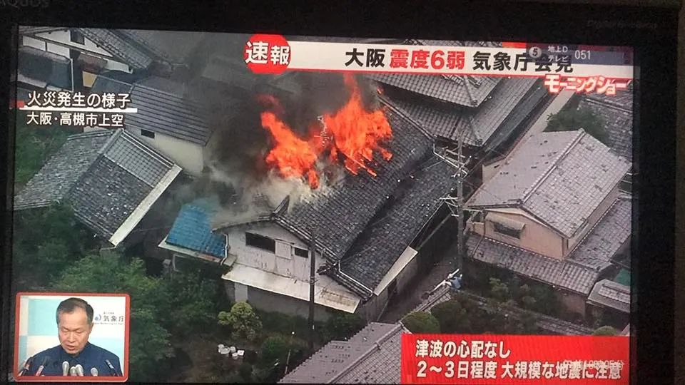 ในวันนี้เวลา 7:58 น. เกิดเหตุแผ่นดินไหวขนาดรุนแรงขนาด M6.1 (ประกาศปรับเพิ่มเมื่อสักครู่) จุดศก. ทางตอนเหนือของ จ. โอซาก้า ความลึกประมาณ 10 กม. ขณะนี้การจราจรหลายแห่งเป็นอัมพาต คาดว่าจะมีผู้เสียชีวิตและบาดเจ็บจำนวนมาก (ตัวปัจจุบัน 13:30 เสียชีวิตแล้ว 3 ราย บาดเจ็บ 91 ราย) ขอให้ทุกท่านระมัดระวังตัวและติดตามข่าวด้วยค่ะ ไม่มีประกาศเตือนสึนามิ