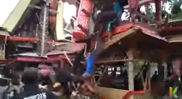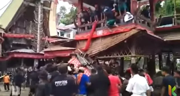 วันที่ 15 มิ.ย 2561 ช่อง Kabar News ในเวบไซต์ youtube เผยแพร่คลิปนาทีสลด ใน เมืองโตราจาเหนือ ของประเทศอินโดนีเซีย ลูกชายและชาวบ้านได้แบกศพแม่ขึ้นบนศาลาเพื่อประกอบพิธีทางศาสนาประจำท้องถิ่น ซึ่งทุกคนได้ช่วยกันยกโลงศพขึ้นบันได้ไม้ ขณะที่โลงศพกำลังจะพ้นบันไดเข้าสู่ศาลานั้น เกิดความผิดพลาดขึ้น บันไดไม้เกิดไถลลื่นลงกระทันหัน ทำให้โลงศพล่วงลงมาทับคนที่แบกโลงศพอยู่บนบันไดทันที