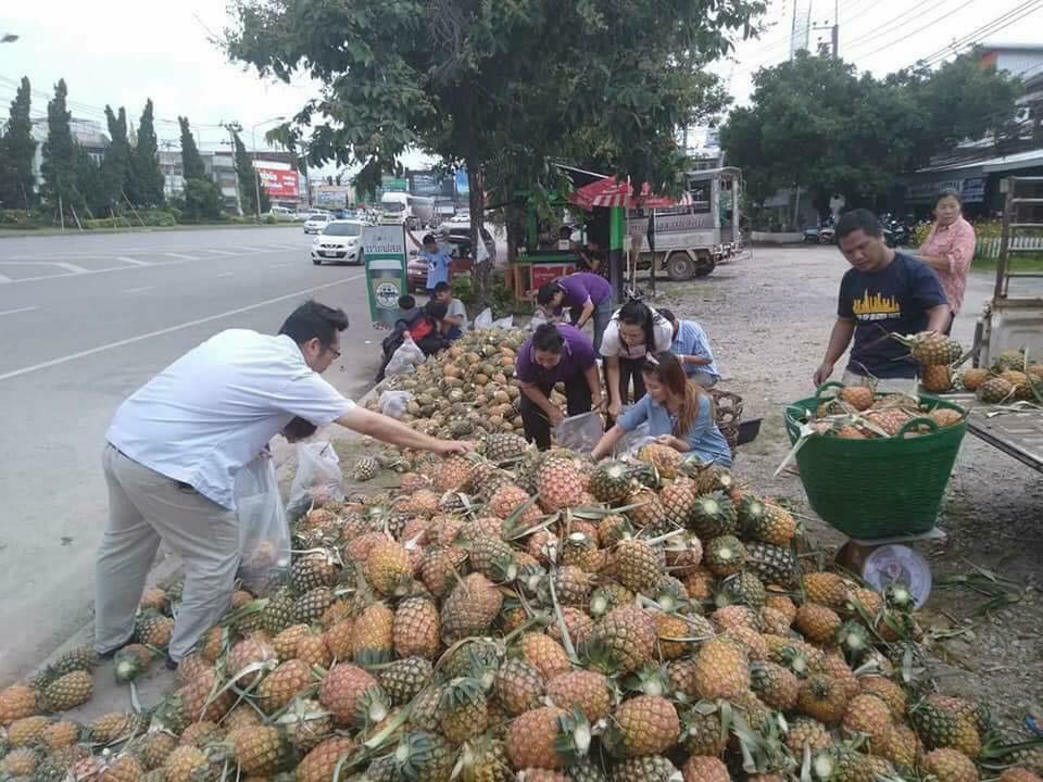 ตามที่ปรากฏเป็นการทั่วไป ราคาสับปะรดตกต่ำที่สุดในรอบ 10 ปี ราคาหน้าสวนเหลือเพียงกิโลกรัมละ 1-2 บาทเท่านั้น ทำให้เกษตรกรบางจังหวัดต้องนำมากองแจกจ่ายให้กับผู้บริโภคเพื่อประชดการขาดความเหลียวแลของรัฐบาลนั้น