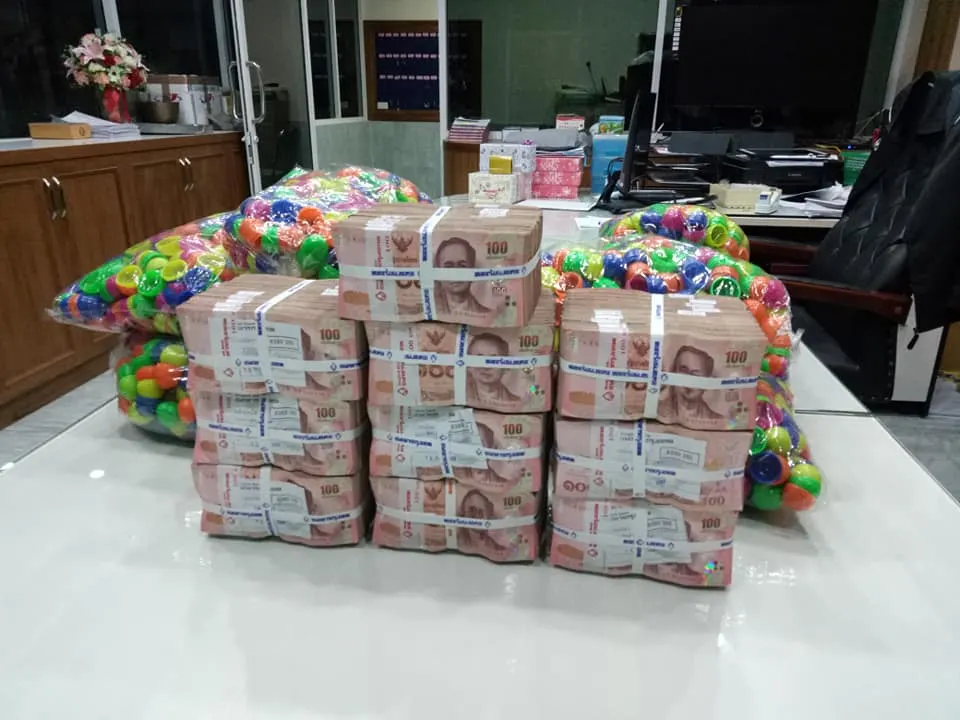 แชร์สนั่นลั่นโซเชียล!! เมื่อผู้ใช้เฟซบุ๊กที่ชื่อ สมชาย กมลพันธ์ทิพย์ ได้แชร์ภาพและคลิปพนักงานกำลังเตรียมพับแบงค์ร้อยใส่ลูกไข่ จำนวนเงินรวมกว่าล้านบาท เพื่อโปรยทานงานบวช ที่วัดโพธารามเวลา จังหวัดราชบุรี ในวันที่ 23 มิถนายนนี้ เวลา 9 โมงเช้า