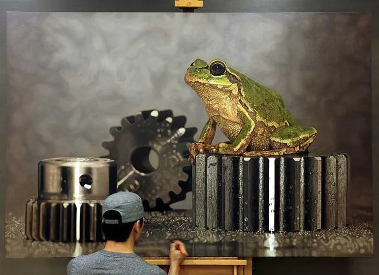ผลงานอันสุดตื่นตานี้เป็นของ Young-Sung Kim ศิลปินหนุ่มชาวเกาหลี ที่มีทักษะความสามารถในระดับที่ไม่ธรรมดา โดยเขาได้ทุ่มเทวาดภาพเสมือนจริง ในโปรเจ็กต์ที่ชืือว่า Nothing. Life. Object โดยงานชุดนี้เขาได้เริ่มทำมาตั้งแต่ปี 2006 จนถึงปัจจุบัน โดยภาพวาดแต่ละภาพนั้นเป็นภาพชองสิ่งมีชีวิตกับสิ่งของต่างๆ ทั้งปลาในขวดแก้ว กิ้งก่า หรือกบ แต่ละภาพนั้นบอกไว้เลยว่ามันเหมือนภาพถ่ายมากกว่าภาพวาดครับ