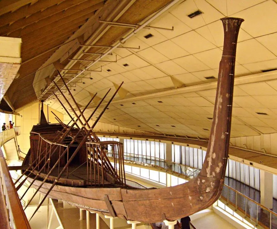 กิซ่า พีระมิดของฟาโรห์คูฟูมีหลุมเรือ (Boat Pits) อยู่ทั้งหมด 5 หลุม แต่หลุมทางทิศใต้สองหลุมยังคงมี “เรือไม้” โบราณบรรจุอยู่ ทว่าเรือไม้สองลำนี้อยู่ในลักษณะ “แยกส่วน” สำหรับเรือลำแรกนักโบราณคดีต้องทำการประกอบแผ่นไม้ราว 1,224 ชิ้น จนในที่สุดก็สำเร็จออกมาเป็นเรือขนาดใหญ่ที่มีความยาวราว