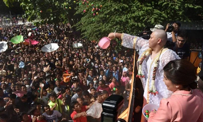 นับหมื่นคน แห่รับโปรยทานในงานบวชกว่า 1 ล้านบาท ของลูกชายเศรษฐี แห่งเมืองโพธาราม จ.ราชบุรี จนแน่นวัด ท่ามกลางเจ้าหน้าที่รักษาความปลอดภัยกว่า 200 นาย