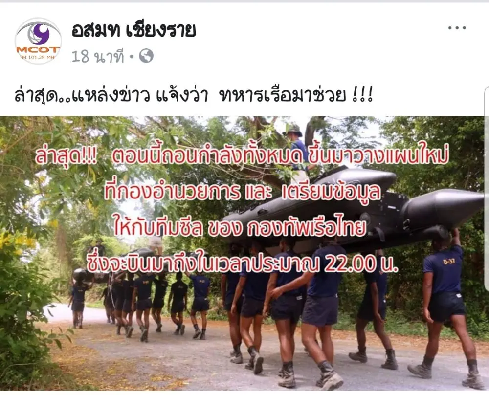 หน่วยซีลดำน้ำได้เดินทางมาถึงถ้ำแล้ว เพื่อค้นหาทีมนักฟุตบอลเยาวชน 13 ชีวิตที่สูญหาย หลังน้ำไหลหลากในถ้ำ