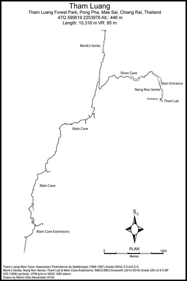 ข้อมูลสำคัญสำหรับทีมค้นหาและช่วยเหลือเด็กสูญหายในถ้ำนะครับ ถ้ำนางนอนหลวงเป็นถ้ำที่มีทางเข้าออกทางเดียว ระบบระบายอากาศไม่ดี ถ้าจะใช้วิธีการสูบน้ำออกควรตั้งเครื่องสูบน้ำไว้ด้านนอก ไม่งั้นปริมาณ Co2 ภายในถ้ำจะสูงขึ้นทำให้การช่วยเหลือทำได้ยากและมีความเสี่ยงมากขึ้นนะครับ ตำแหน่งที่คาดว่าเด็ก ๆ น่าจะอยู่(ตำแหน่งวงกลมสีแดง) ลึกที่สุดบริเวณปลายสุดของ Show cave น่าจะประมาณไม่เกิน 1 กม.จากปากถ้ำ ถ้าเลยนี้ไป Section ด้านในที่เป็นเส้นทางเข้า Monk's series เส้นทางแคบและซับซ้อนหาเจอยากมาก คิดว่าคนทั่วไปไม่น่าหาเส้นทางเข้าไปด้านในได้ครับ