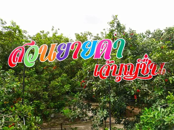 สโลแกนของสวนยายดา-เจ้บุญชื่น คือ “สวนนี้ปลูกไวแบบรกรุงรัง แต่ได้สตางค์ทุกต้น”