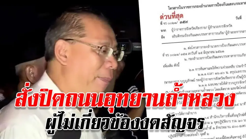 ด่วนที่สุด! ผู้ว่าฯเชียงราย สั่งปิดถนนอุทยานถ้ำหลวง ผู้ไม่เกี่ยวข้องงดสัญจร