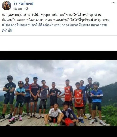ล่าสุด เฟซบุ๊ก ริว จิตสัมผัสก็ได้ไลฟ์สดคุยกับเเฟนเพจ ให้ความรู้เกี่ยวกับการทำความดี การพูดคุยเรื่องธรรมะ และมีผู้ร่วมชมหลักพัน และมีแฟนเพจได้โพสท์ข้อความถึงเรื่อง "เยาวชนนักฟุตบอลที่หายไปในถ้ำหลวง 13 คน" โที่ขอให้ทาง คุณริวช่วยดูว่า เด็กๆในถ้ำเป็นอย่างไรบ้างแล้ว
