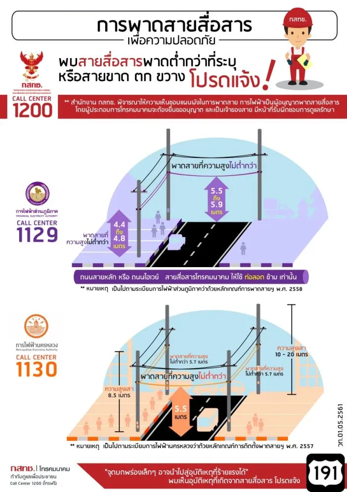 "จุดบกพร่องเล็กๆ อาจนำไปสู่อุบัติเหตุที่ร้ายแรงได้" พบเห็นอุบัติเหตุที่เกิดจากสายสื่อสาร โปรดแจ้ง 191