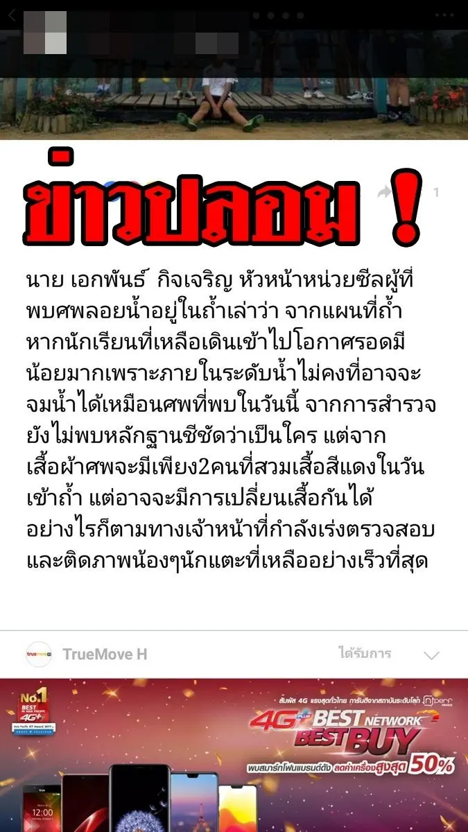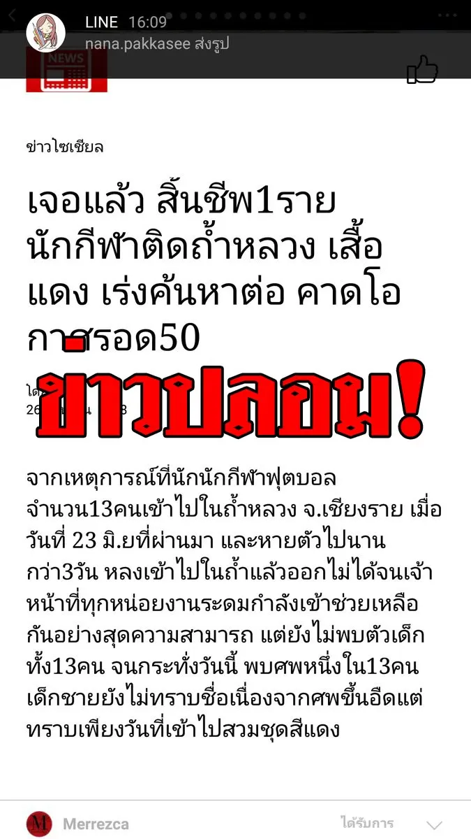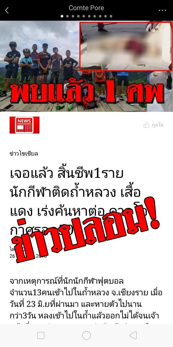 จวกยับเพจปล่อยข่าวปลอม! หลังลงข่าวมีผู้เสียชีวิตในถ้ำหลวง