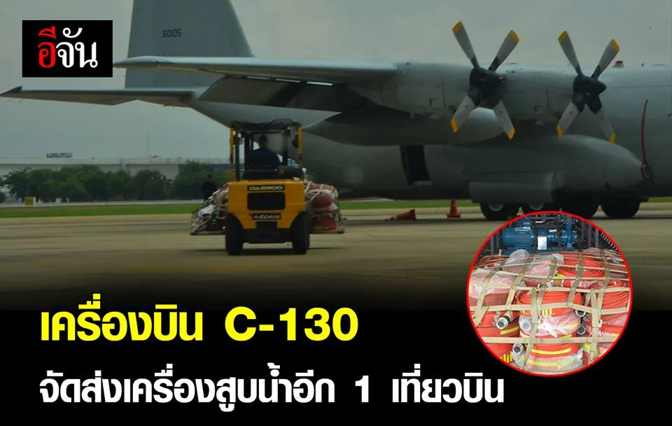 กองทัพอากาศ สนับสนุนเครื่องบิน C-130 จัดส่งเครื่องสูบน้ำของ กทม. เพิ่ม 1 เที่ยวบิน