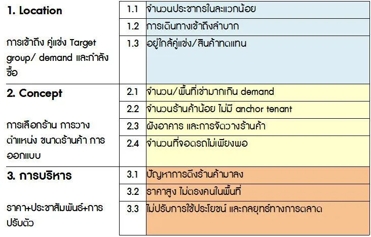 ปัจจัยที่ทำให้โครงการคอมมิวนิตี้มอลล์ ไม่ประสบความสำเร็จประกอบด้วย