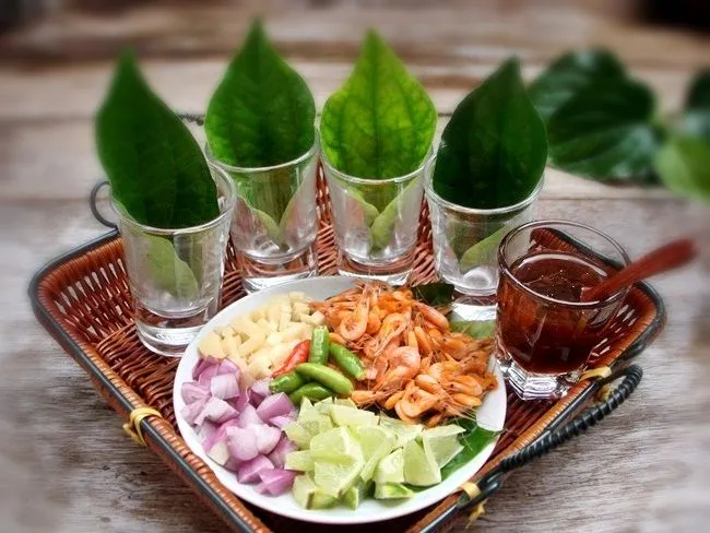 เมนูเมี่ยงคำมีทั้งผักใบเขียวอย่างใบชะพลู มีขิง หัวหอม พริก มะนาว มะพร้าว ถั่วลิสง และกุ้งแห้ง ซึ่งแค่เห็นส่วนผสมก็เชื่อแล้วว่าต้านหวัดได้ชัวร์
