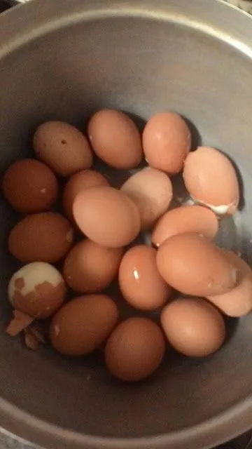 - จากนั้นก็เอามาต้มตามปกติ ใส่น้ำ ใส่ไข่ และใส่เกลือป่นพอประมาณ เราใส่เกลือป่นประมาณ 1 ช้อนโต๊ะกินข้าวค่ะ น้ำต้องท่วมไข่นะคะ