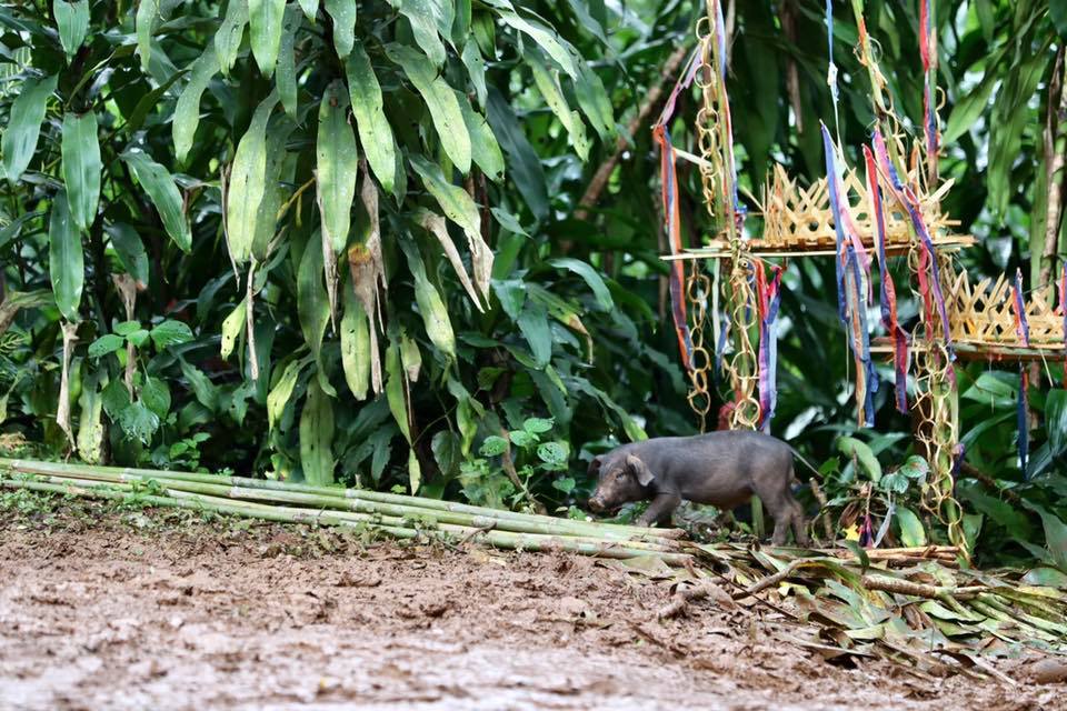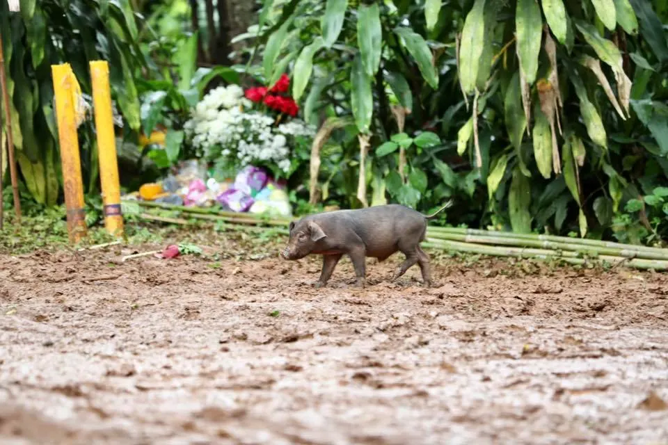 เป็นนิมิตรหมายที่ดี ลูกหมูป่าออกมาเดินเล่นบริเวณถ้ำหลวง