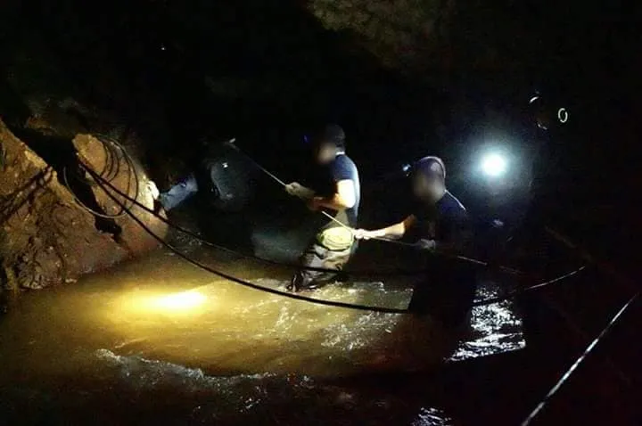 สัญญาณดี สูบน้ำออกได้เร็ว เตรียมวางเชือกจากโถง 3 ไปยังสามแยก ในถ้ำหลวง