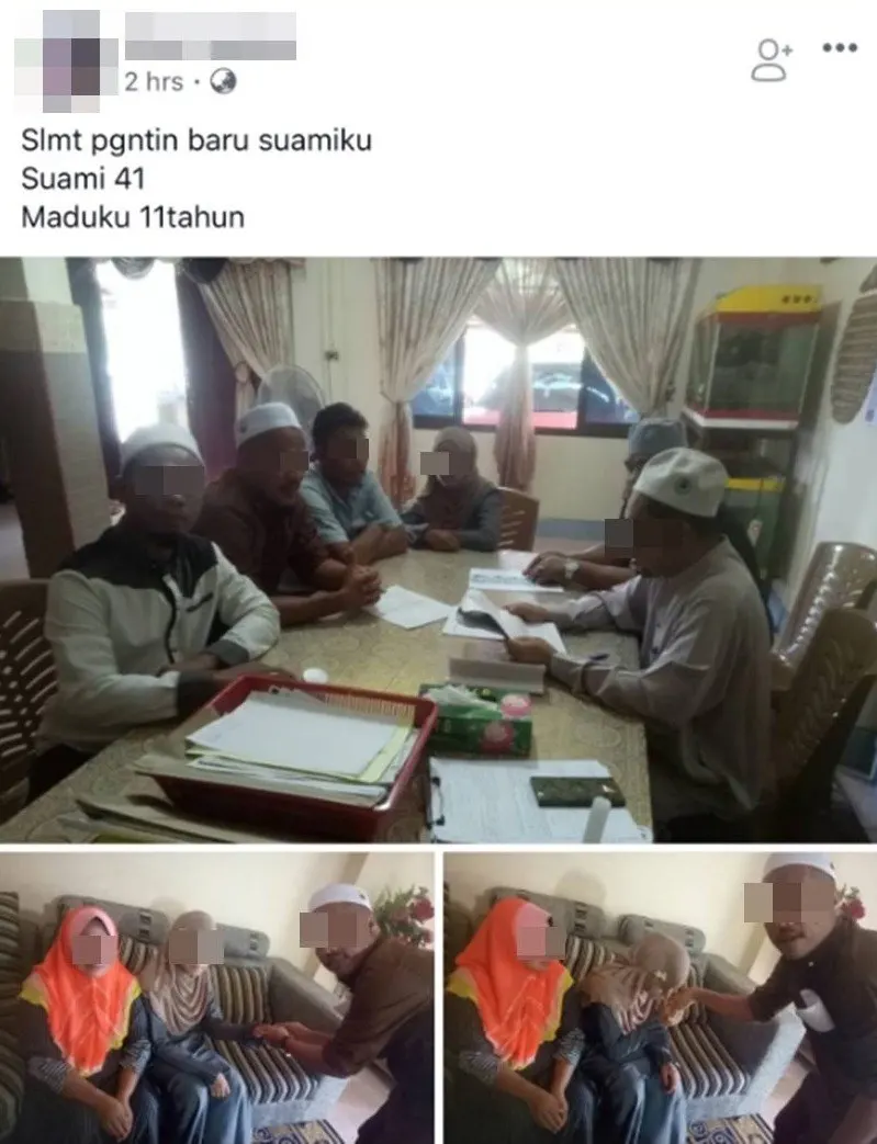 โดยในรายงานระบุว่า เจ้าบ่าววัย 41 ปี เป็นอิหม่ามมีภรรยา 2คน อยู่ที่ กลันตัน ประเทศมาเลเซีย เขามีลูกกับภรรยาอีก 6 คน โดยมีอายุระหว่าง 5-18 ปี และที่น่าตกใจก็คือ เจ้าสาววัย 11ปีของเขา คือหนึ่งในเพื่อนของลูกสาวตัวเอง (นำเพื่อนของลูกมาเป็นภรรยา)