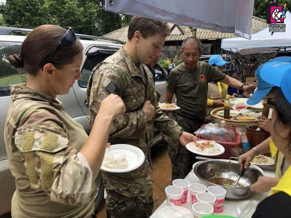 ทหารอเมริกัน กินข้าวต้มมัดกับส้มตำ และน้ำเงี้ยว เพิ่มพลังก่อนลุยงานต่อ กับภารกิจช่วยเหลือ 13 ชีวิตฯ