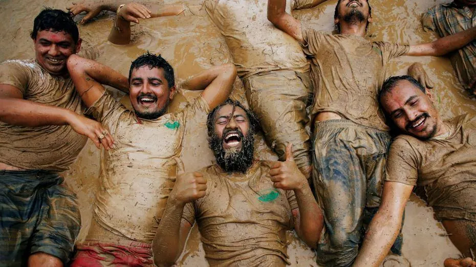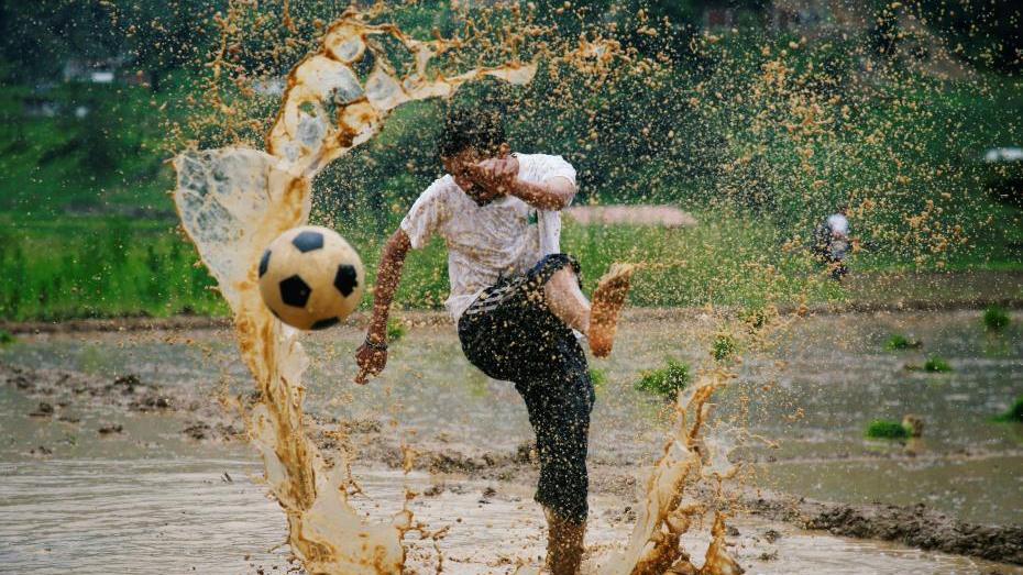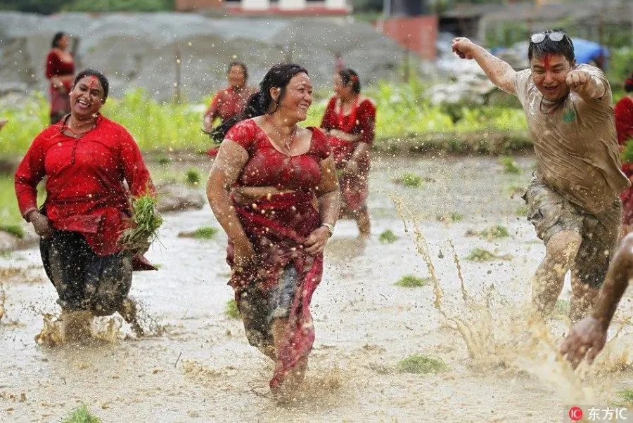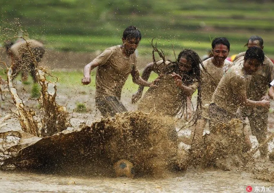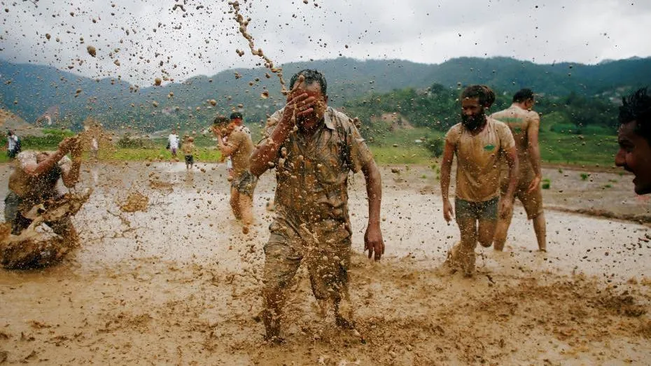 ชมภาพเหล่าเกษตรกรที่กำลังร้องเพลง เต้นรำ และเตะฟุตบอลอย่างสนุกสุดเหวี่ยงอยู่ในทุ่งนา หมู่บ้าน Lele เมือง Bagmati ประเทศเนปาล เพื่อเฉลิมฉลองเทศกาลนาข้าวแห่งชาติ ที่จัดขึ้นทุกปีในวัน “Asar 15” ตามปฏิทินของเนปาล ซึ่งถูกจัดขึ้นด้วยความเชื่อของที่ว่าจะทำให้ผลผลิตออกมาเจริญงอกงาม