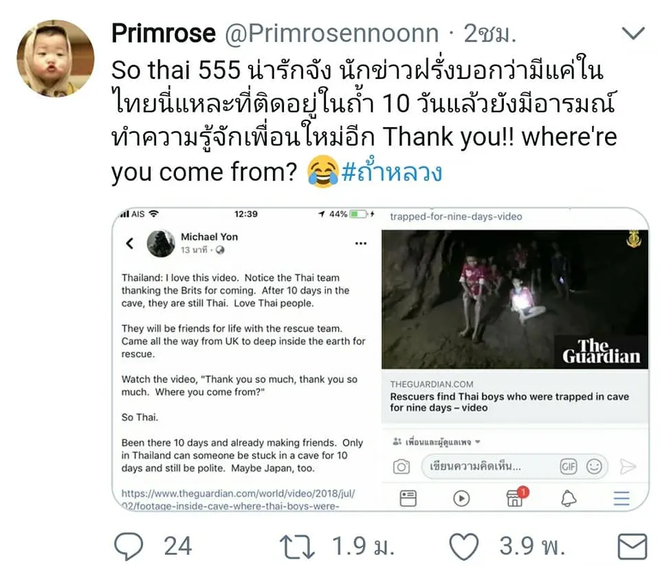 นี่คือโฉมหน้าน้องทีหมูป่าที่พูดภาษาอังกฤษกับนักดำน้ำชาวอังกฤษ