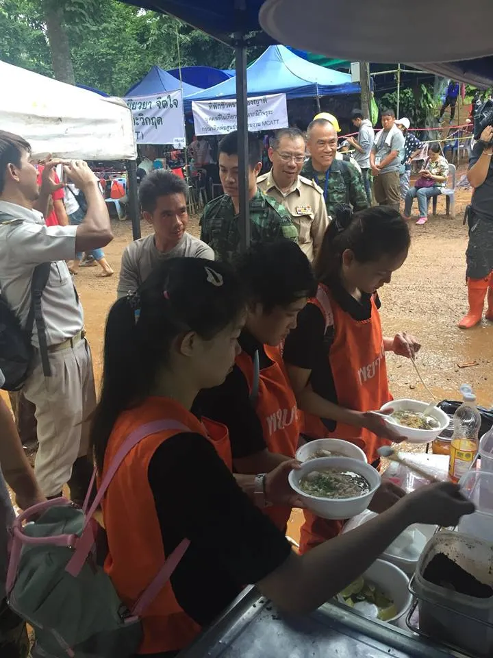 โดยตั้งแต่ ภารกิจค้นหาทีมหมูป่าทั้ง 13 ชีวิตที่เริ่มตั้งแต่วันที่ 23 มิ.ย. ผู้ที่อยู่เบื้องหลังเป็นกองกำลังสำคัญที่ทำให้เจ้าหน้าที่มีแรงปฏิบัติหน้าที่ก็คือเหล่าพ่อครัว แม่ครัวจิตอาสานั่นเอง ที่ทุกๆวันจะต้องตื่นตั้งแต่เช้ามืด และรีบส่งอาหารมื้อเช้า ที่จะต้องส่งเข้าไปให้หน่วยซีลด้านใน ตั้งแต่เช้ามืด เวลาประมาณ 03.00 น. เนื่องจากต้องรีบส่งเข้าไปให้ เพราะกว่าจะเดินทางเข้าไปถึงนั้นต้องใช้เวลาหลายชั่วโมง และกลัวว่า หน่วยซีลและเจ้าหน้าที่ด้านในจะหิว