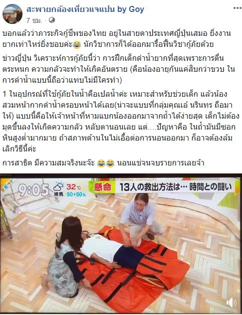 โดยทางเพจได้โพส์ระบุว่า ญี่ปุ่นเค้าตื่นตัวกับเหตุการณ์กู้ภัย 13 ชีวิตของบ้านเรามากนะคะ หาได้ใช่เรื่องบ้านพี่เมืองน้องไม่ แต่เป็นเพราะนี่เป็นเคสยากระดับโลก ที่เค้าต้องการศึกษาไว้เช่นกันค่ะ