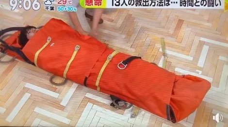 ทั้งนี้ อีกหนึ่งรายการของญี่ปุ่น แนะการช่วยเหลืออีกวิธีคือ ใช้อุปกรณ์เปลน้ำ เหมาะสำหรับช่วยเด็ก โดยให้น้องๆ สวมหน้ากากดำน้ำครอบหน้า แล้วให้เจ้าหน้าที่หามแบกน้องออกมาจากถ้ำได้ง่ายสุด แต่ปัญหาคือ ในถ้ำมันมีซอกหินสูงต่ำมากมาย หากสภาพด้านในถ้ำไม่เอื้ออำนวยวิธีนี้ก็อาจจะใช้ไม่ได้เช่นกัน