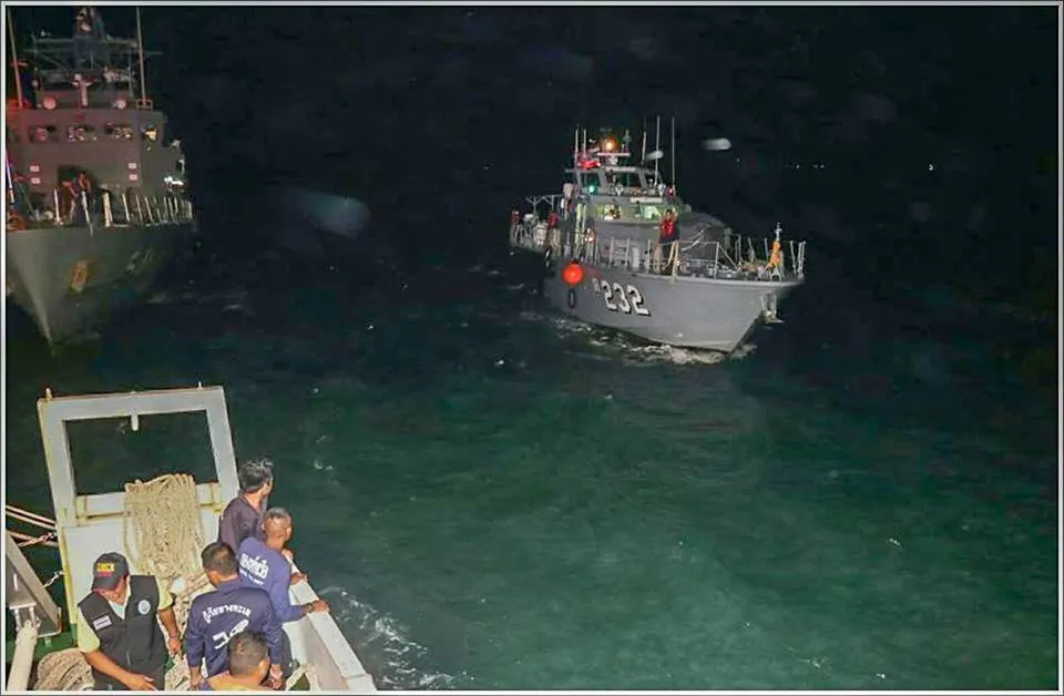 เฮลิคอปเตอร์ลำเลียงแบบที่ 4 ขึ้นค้นหาผู้ประสบภัย ชุดปฏิบัติการพิเศษทัพเรือภาคที่ 3 พร้อมอุปกรณ์สนับสนุนการค้นหาผู้ประสบภัยที่คาดว่าจะติดอยู่ในเรือรวมทั้งหน่วยรักษาความปลอดภัยของทัพเรือภาคที่ 3 สำนักงานประชาสัมพันธ์จังหวัดภูเก็ต /ข่าว