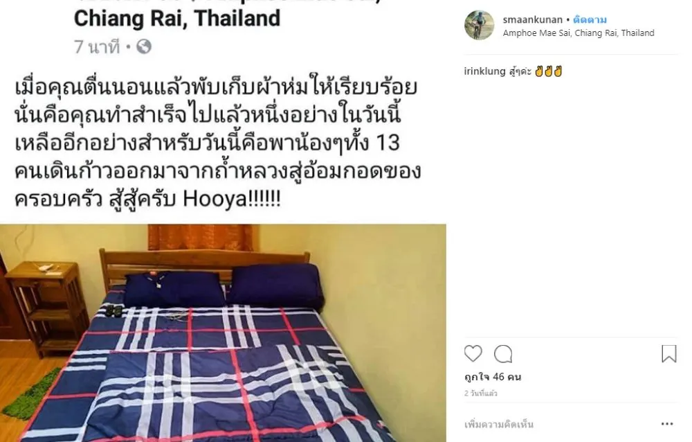โดยในวันเดียวกันก่อนเสียชีวิต จ.อ.สมาน โพสท์ภาพ ทีมซีลที่ถ้ำ โพสท์ลงอินสตาแกรมส่วนตัว เป็นข้อความสุดท้ายของชีวิต ระบุว่า "เพื่อเป็นขวัญและกำลังใจ"