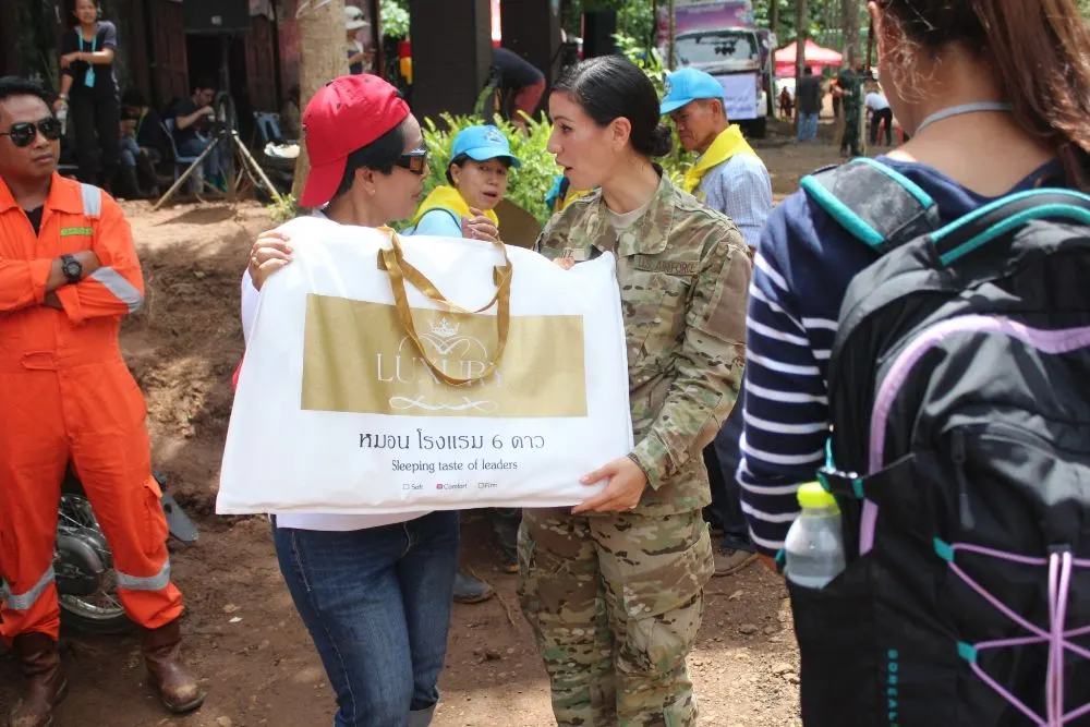 ล่าสุดป้าติ๋ม ชาวบ้านจังหวัดเชียงราย ตัวแทน หมอน Luxury นำทีมงาน มุ่งหน้าสู่ถ้ำหลวง ขุนน้ำนางนอน เพื่อส่งกำลังใจเจ้าหน้าที่ที่ปฏิบัติงาน ณ ถ้ำหลวง โดยการมอบเครื่องดื่ม ของใช้จำเป็น รวมถึงหมอนป้องกันไรฝุ่น ที่ทำมาจากเส้นใยอย่างดีช่วยในการพักผ่อนหลับนอนที่ดี ให้แกเจ้าหน้าที่ แม่ครัว ทีมสูบน้ำ นักข่าว จิตอาสา รวมถึง ทหารหญิงสหรัฐที่เป็นที่ปลื้มมากๆ ของชาวเชียงรายรวมถึงคนไทยทั้งประเทศ ยังไงคนไทยก็ไม่ทิ้งกันไปชมภาพบรรยากาศกันเลย
