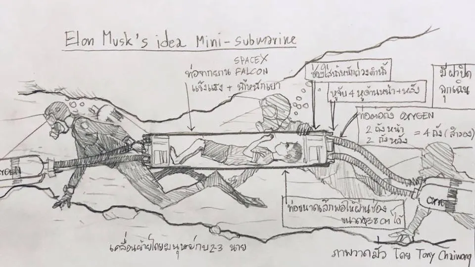 Got more great feedback from Thailand. Primary path is basically a tiny, kid-size submarine using the liquid oxygen transfer tube of Falcon rocket as hull. Light enough to be carried by 2 divers, small enough to get through narrow gaps. Extremely robust. - Elon Musk
