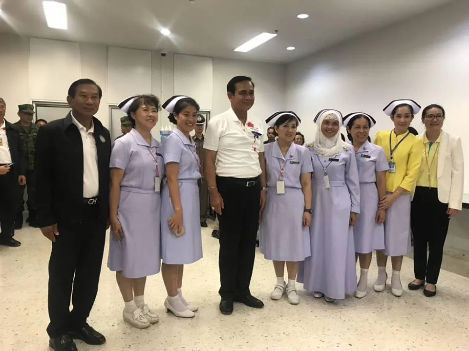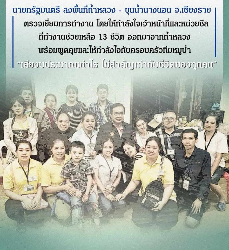 นายกรัฐมนตรีเยี่ยมให้กำลังใจทีมงานจากต่างประเทศ รวมถึงญาติพี่น้องและทีมแพทย์-พยาบาลของทีมหมูป่า 8 คน ที่ รพ.เชียงราย โดยไม่ได้เข้าเยี่ยมเด็กๆ เพราะไม่อยากรบกวน