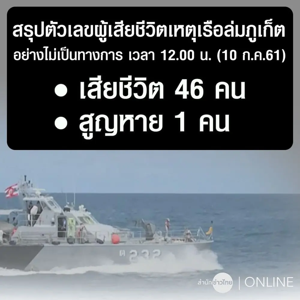 สรุปตัวเลขผู้เสียชีวิตจากเหตุเรือล่มภูเก็ตอย่างไม่เป็นทางการ เวลา 12.00 น. (10 ก.ค.61)