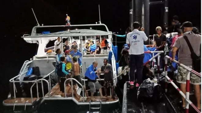 ตอนเกือบ 5 ทุ่ม นักท่องเที่ยว 51 คน ได้รับการช่วยเหลือไปกับเรือชูชีพและเรือประมง 12 ลำ ส่วนคนอื่นๆ ที่เหลือนั้นไม่สามารถติดตามได้เนื่องจากฟ้ามืดมิด อีกทั้งพายุคลื่นทะเลลูกใหญ่กำลังซัดกระหน่ำ” กัปตันเรือกล่าว