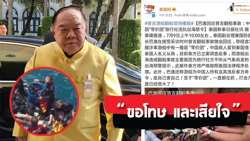 พล.อ.ประวิตร วงษ์สุวรรณ รองนายกรัฐมนตรี กล่าวถึง กรณีชาวจีนไม่พอใจกับคำสัมภาษณ์ที่ระบุว่า เหตุเรือฟินิกซ์ล่มที่ภูเก็ต เกิดจากชาวจีนฝ่าฝืนคำเตือน โดยยืนยันถึงการระบุที่ว่า เหตุการณ์ที่เกิดขึ้นเป็นเพราะคนจีนทำกันเอง จะไม่กระทบการท่องเที่ยว หลังโชเชียลจีนไม่พอใจ เพราะเป็นคนละเรื่อง ต้องแยกการช่วยหลือกับการทำผิด ออกจากกัน แต่ถ้าหากตนพูดอะไรไม่พอใจก็ขอโทษ เพราะตนได้รับรายงานมาอย่างนั้น ขออย่านำมาปนกัน และรัฐบาลจีนก็ไม่ได้ตำหนิในประเด็นดังกล่าว ขณะที่ความคืบหน้าในการค้นหาศพผู้เสียชีวิต ยอดล่าสุดยังอยู่ที่ 44 ศพ ยังไม่สามารถกู้ศพที่ติดอยู่ใต้ซากเรือได้ ซึ่งต้องใช้วิธีดูดทรายออก