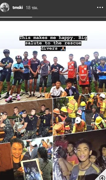โดยทรงระบุข้อความว่า “This makes me happy. Big salute to the rescue divers” (นี่ทำให้ผมมีความสุขมาก ขอชื่นชมและยกย่องทีมนักประดาน้ำช่วยเหลือ)