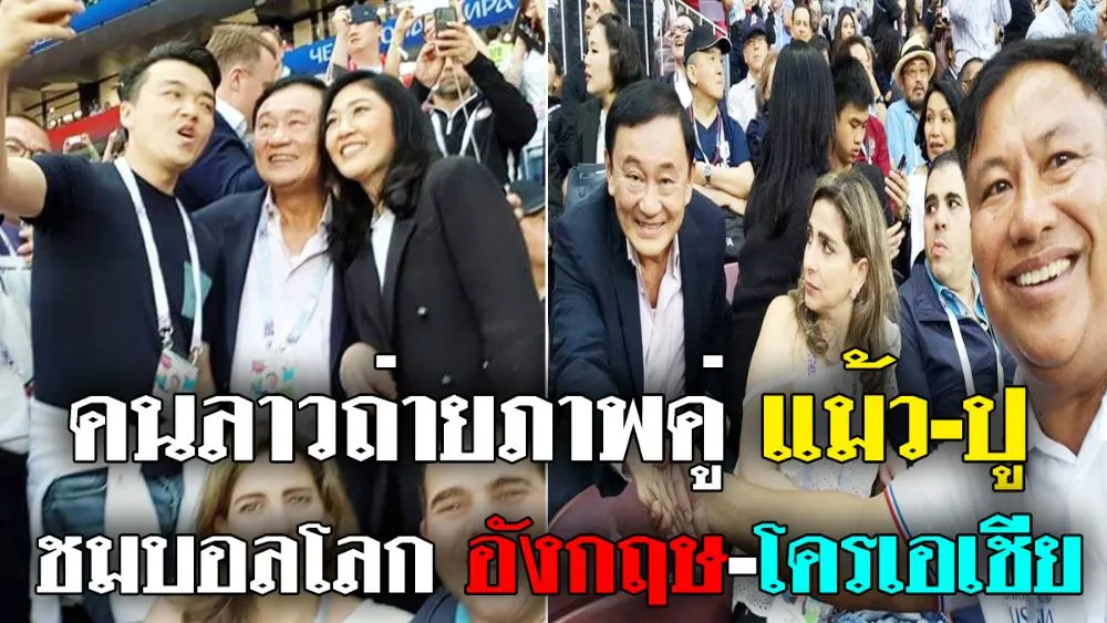 เมื่อวันที่ 11 ก.ค. คนลาวถ่ายภาพคู่ "ทักษิณ-ยิ่งลักษณ์"ขณะไปชมบอลโลกคู่ "อังกฤษ-โครเอเชีย" ที่ขอบสนามประเทศรัสเซีย โดยภาพดังกล่าวถูกเผยแพร่ในโซเชียลลาว