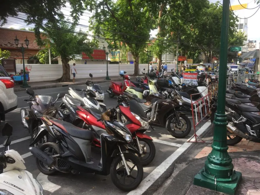 จักรยานยนต์ของ สน. ทั้งตรงถนนและจอดบนฟุตบาท อย่างน่ากลัว