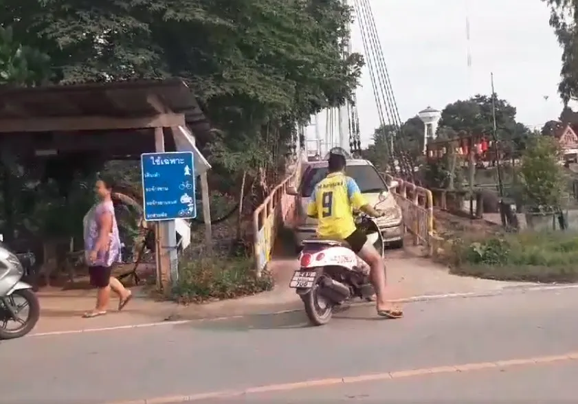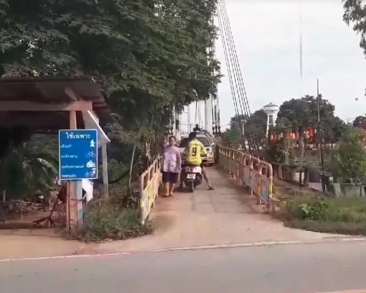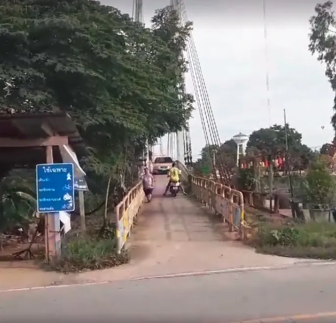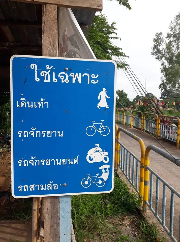 นี่คือสะพานที่มีป้ายระบุไว้ว่าใช้สำหรับคนเดินเท้า รถจักรยาน จักยานยนต์ และสาม เท่านั้น ด้วยความที่มีขนาดเล็ก ถ้าขับรถยนต์ขึ้นมา รถประเภทอื่นๆ รวมถึงคนเดินเท้าจะไม่สามารถสวนไปได้